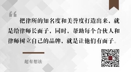其次,我们一直特别珍惜律所的美誉度,并且不断帮助合伙人和律师打造品牌。律师的尊严很大程度上来自于律所的优秀和自己的优秀。所以,我们认为,把律所的知名度和美誉度打造出来,就是给律师长面子,同时,帮助每个合伙人和律师树立自己的品牌,就是让他们有面子。这两个方面不可偏废,而且,我们还认为,不管合伙人资历深浅,进所时间长短,都是有品牌的,都需要品牌的塑造和维护。