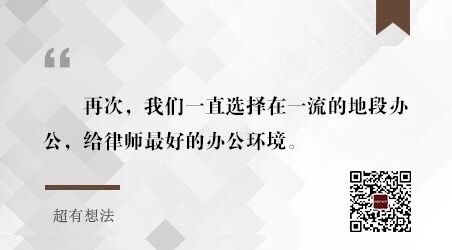再次,我们一直选择在一流的地段办公,给律师最好的办公环境。很多人认为这个不重要,但是,我们觉得,有一个像样的办公条件,是一个律所的律师感到有尊严的基本保障,是客户信赖的基础条件,也是律师在一起愉快工作的平台。我们不追求多么奢华的装修,但我们坚持办公室要像一个优秀的律所,并且在一段时间内有竞争优势,最重要的是要给律师舒适的环境和便利的条件。