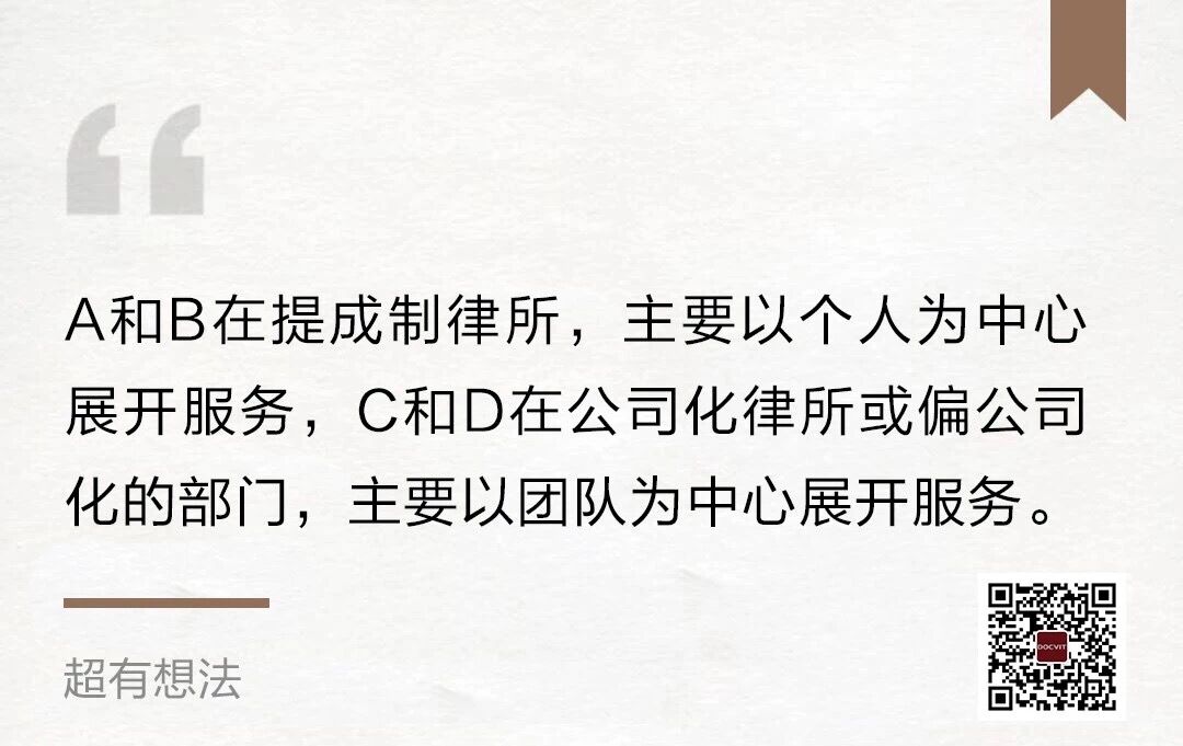 试想一下,A或者B到了C或者D那样的律所,或者A、B甚至C的所改成D那样,会发生什么变化?