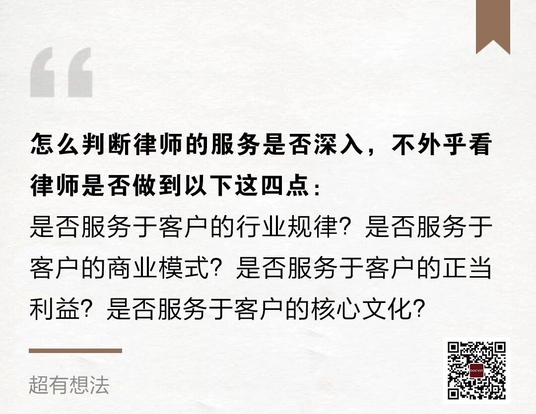 说到底,怎么判断律师的服务是否深入,不外乎看律师是否做到以下这四点: