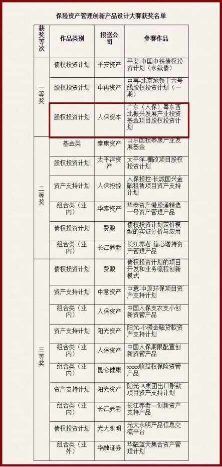 我所担任法律顾问的“人保资本-苏州科技创新股权投资计划”资管项目再获“保险资产管理产品创新大奖”