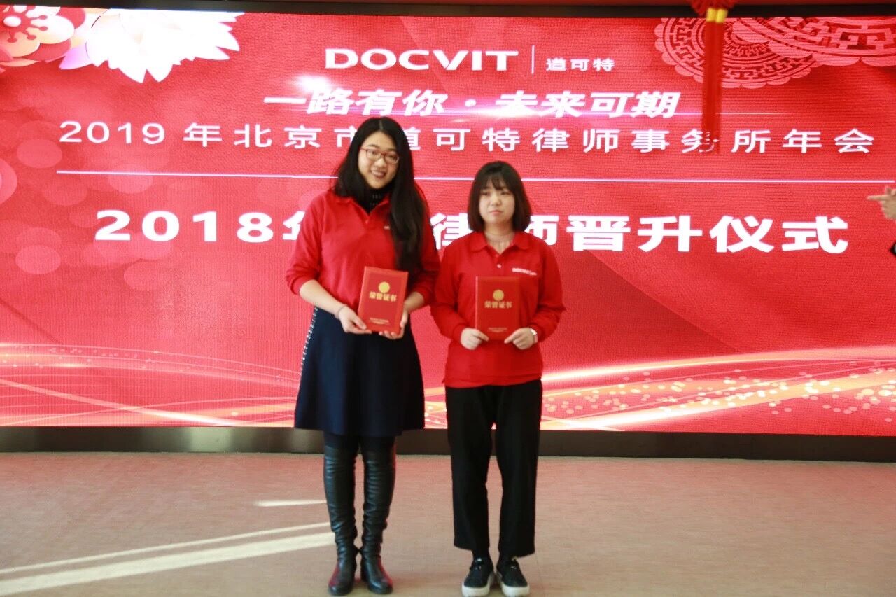 在2018年度律师晋升仪式上,道可特正式晋升第二批“未来合伙人”,并在2017年第一批未来合伙人中选拔出道可特“初级合伙人”。