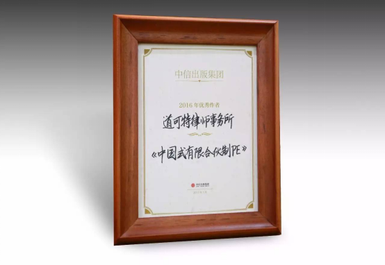 北京市道可特律师事务所荣膺中信出版集团2016年优秀作者称号。